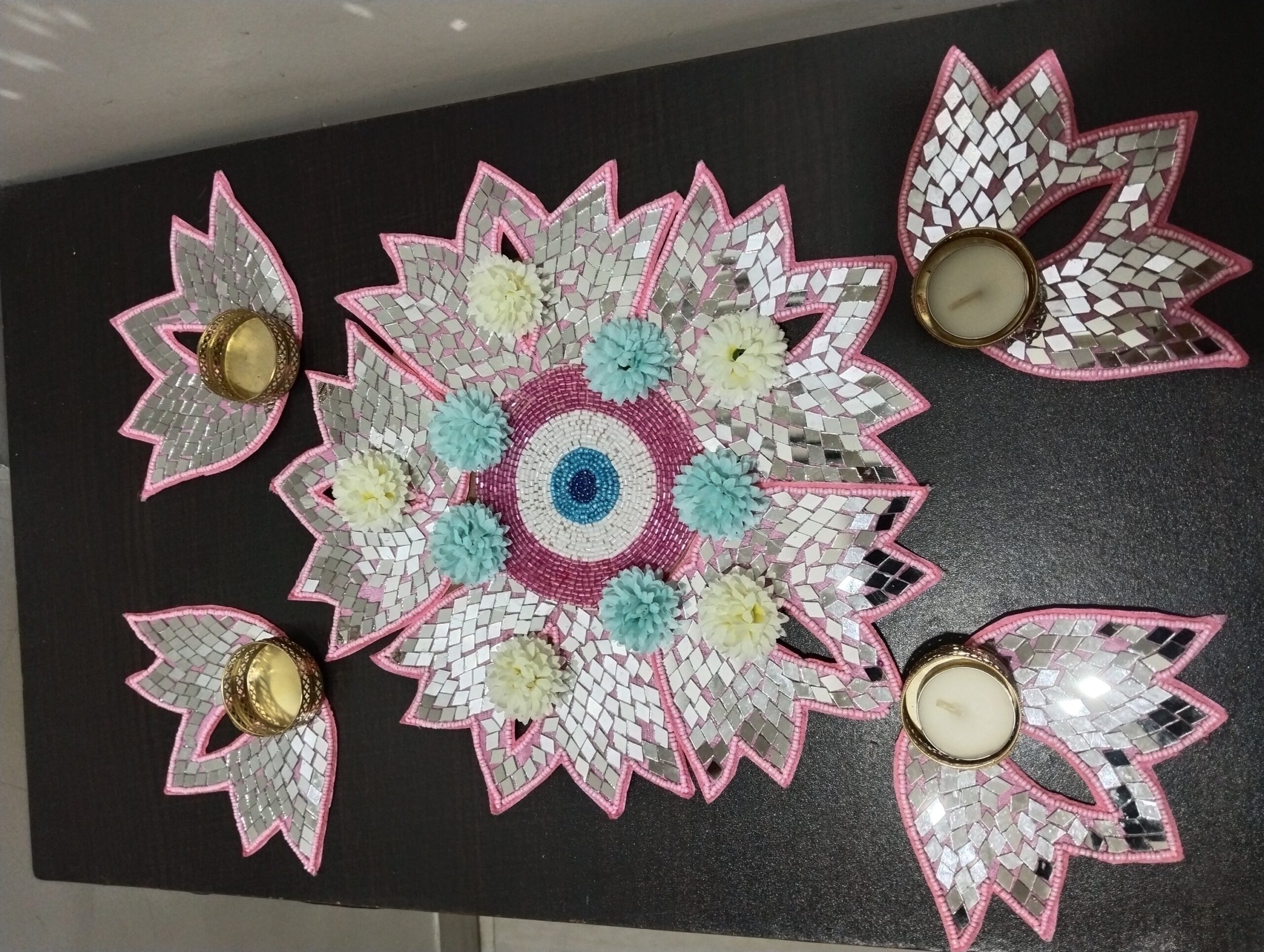 Baby pink mirror patch ready to put rangoli