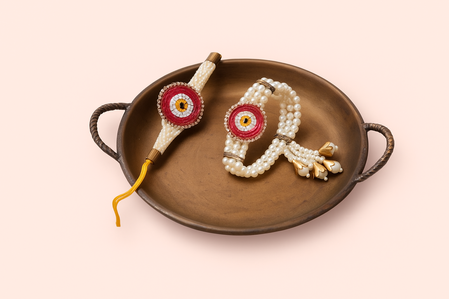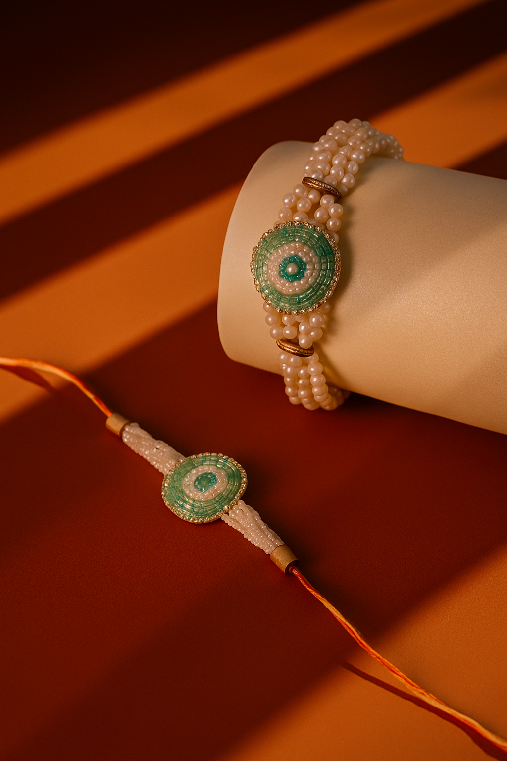 Convey love to your beloved bhaiya and bhabhi with this lovely rakhi set. Crafted with the utmost care and attention to detail, this couple rakhi features intricately designed rakhi and a bracelet dazzling perl beads that are sure to capture everyone’s attention. Each rakhi features an elegant design and expert craftsmanship, made with high-quality materials, ensuring that it will last for years to come and continue to serve as a cherished reminder of your special bond.