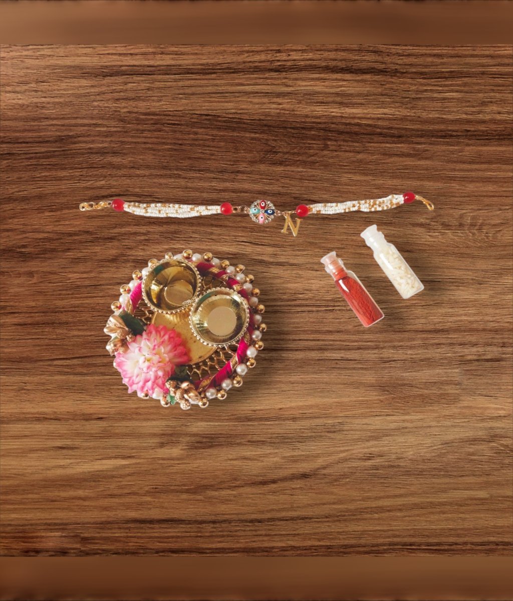 Give your sibling a unique rakhi they will cherish. This amazing rakhi features name initial of you loved ones.