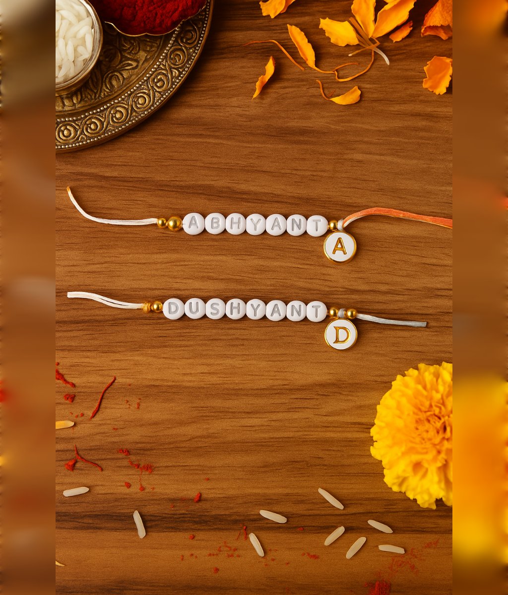 Celebrate the joy of Raksha Bandhan with this divine rakhi. This rakhi is crafted with letters of your given name beads that add a touch of sophistication to its look and feel. It has a chic appearance and can give a memorable feel to your loved ones. The best part of this rakhi is that it can also be worn even after the festivities .Also you add charm into it to enhance its beauty ,later on charm will be used for multipurpose like keychain and bag charm.