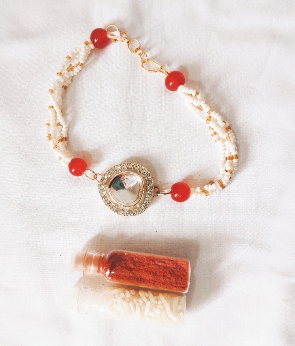 This chain Rakhi can be tied on both Bhai and Bhabi wrist.Not only once the Kundan stone can reused further for jewellery purpose like neckchain or bracelet.