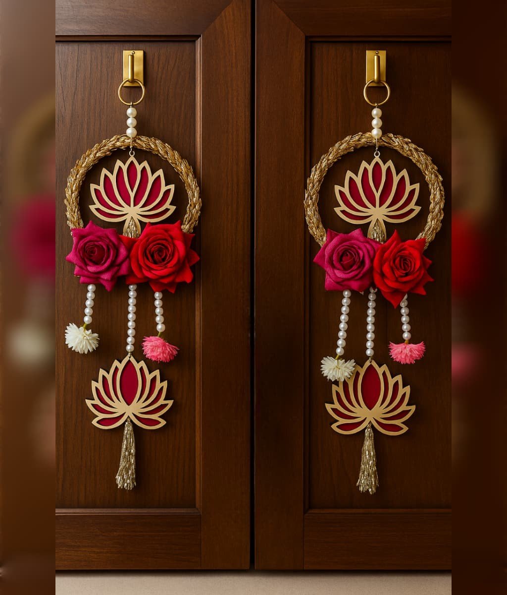 Elegant lace toran with lotus hanging