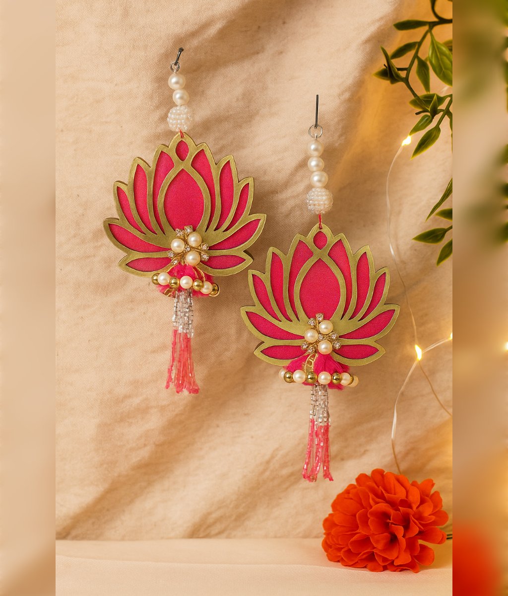 Transform your space with the serene beauty of the our handmade Lotus wall Hanging Pair of 2. This exquisite pink mdf lotus, adorned with the beautiful flower and Golden ring . Perfect as a thoughtful gift for housewarmings, anniversaries, or any special occasion.