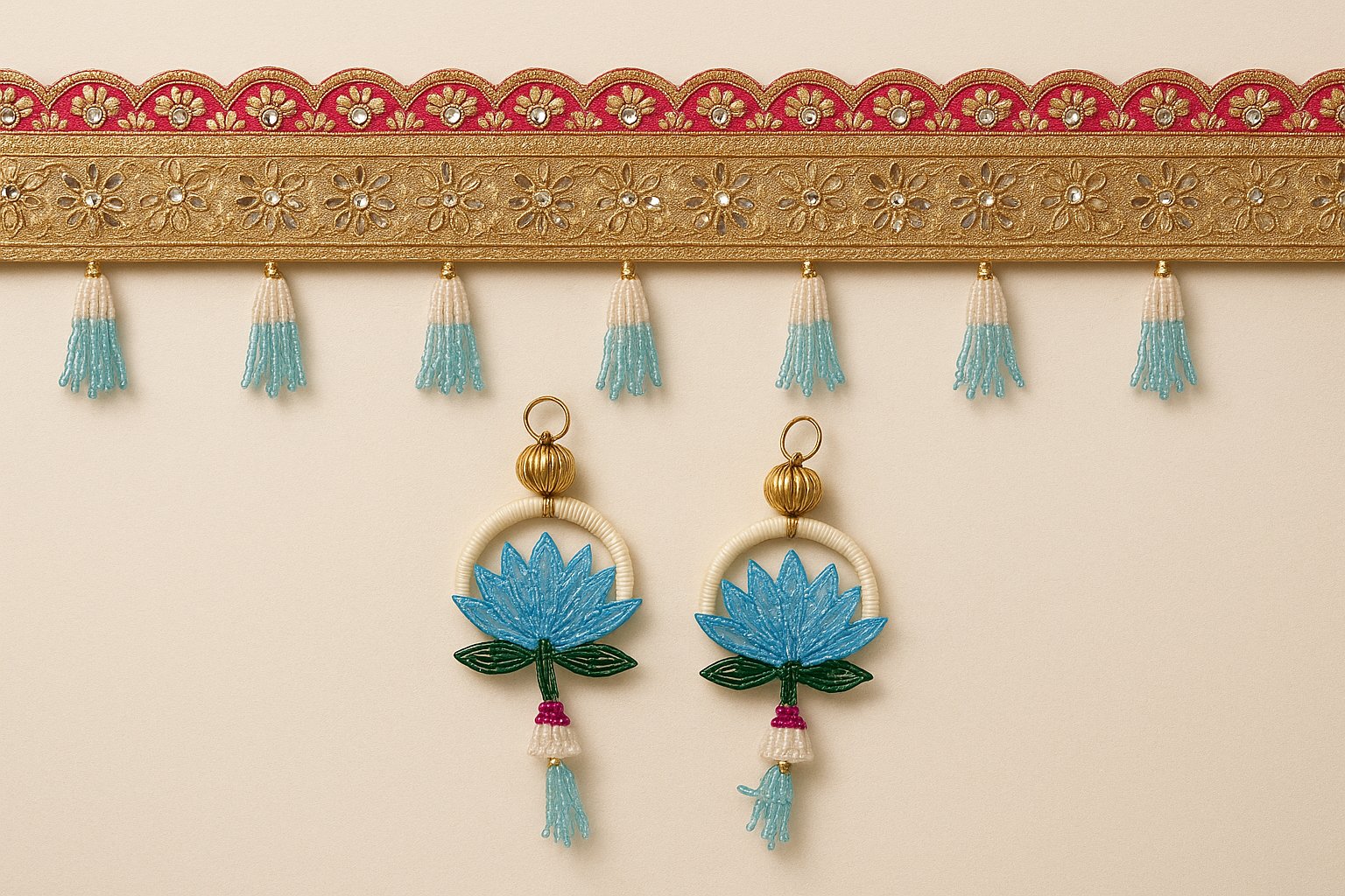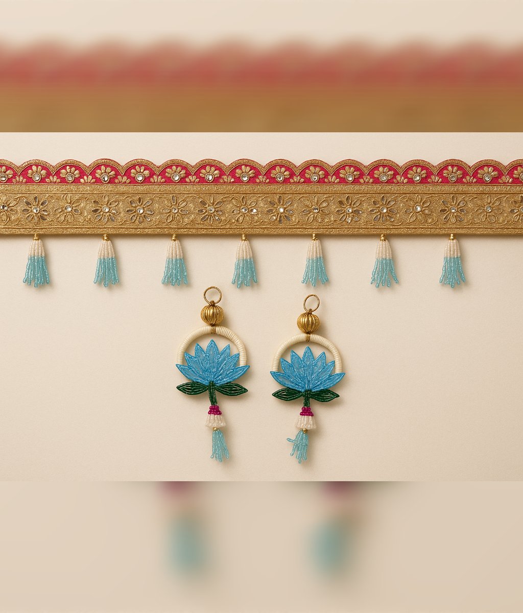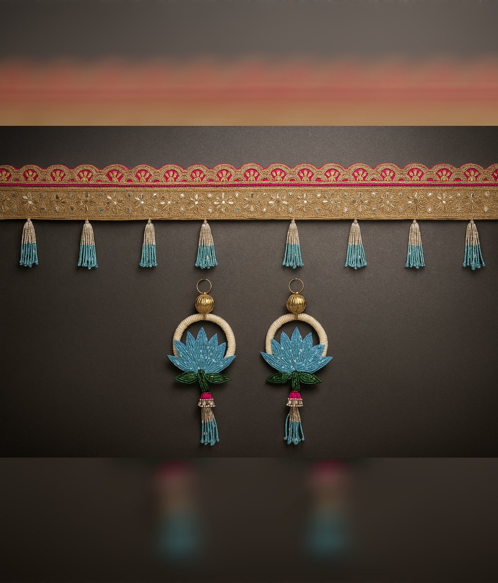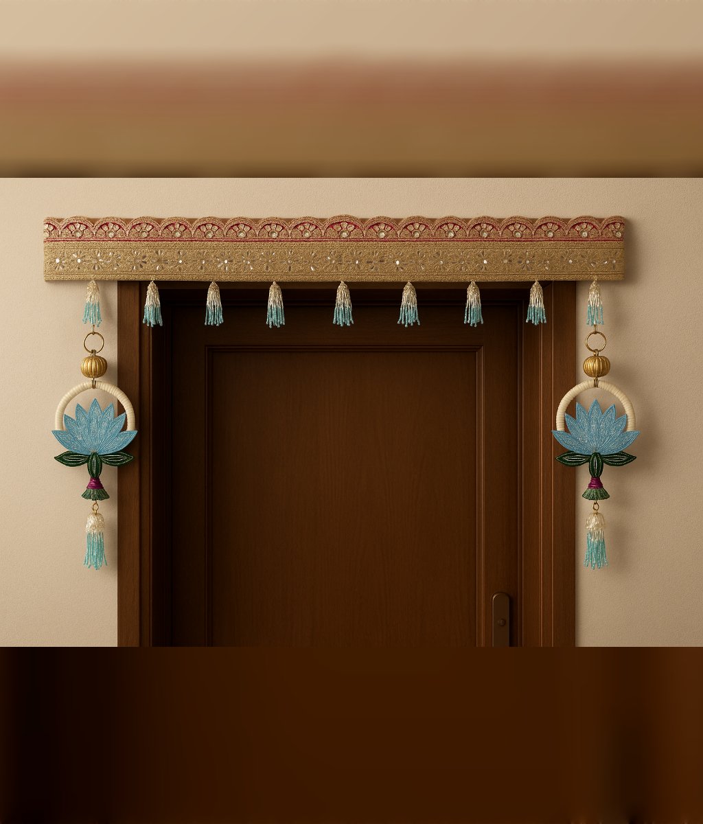 Premium quality designer lace toran with beautiful Lotus hanging.Perfect for festival home decoration and festival gifting .