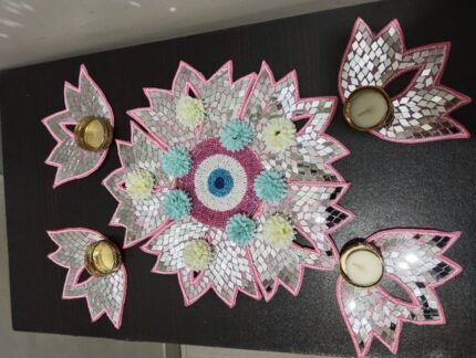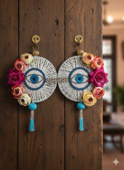 Blue evil with pink mirror lotus toran